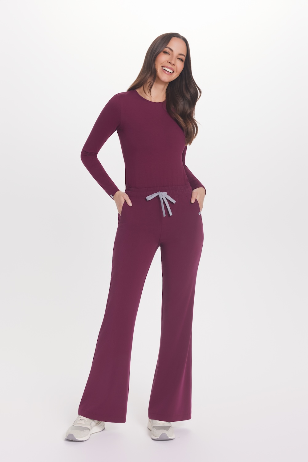 Kombinujte lékařský dlouhý rukáv v barvě Ruby s lékařskou halenkou a lékařskými kalhotami v libovolném střihu a odstínu z mnoha dostupných v kolekci. Med & Beauty Basic.