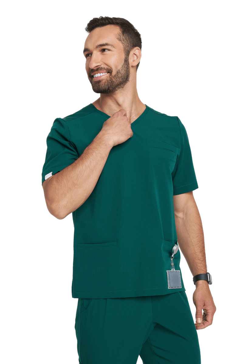 Men's medical blouse scrubs basic bottle green is the perfect base for a classic and highly practical men's medical closet.