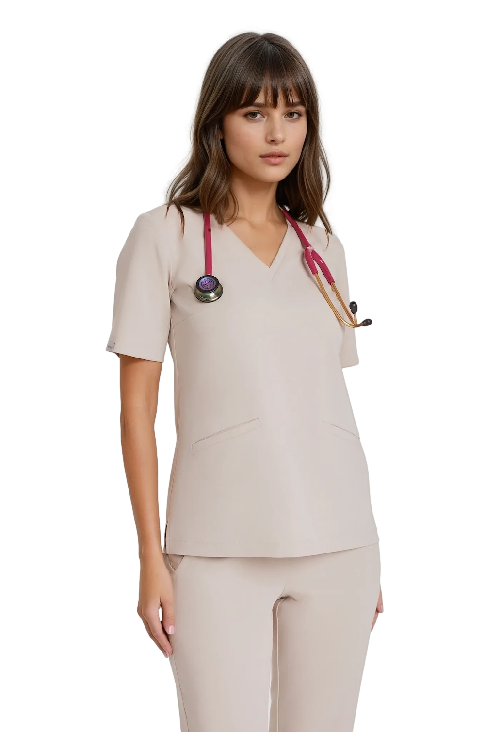 Women's scrubs Basic medical blouse in cold nude isthe perfect base for a reliable and timeless medical clothing closet.