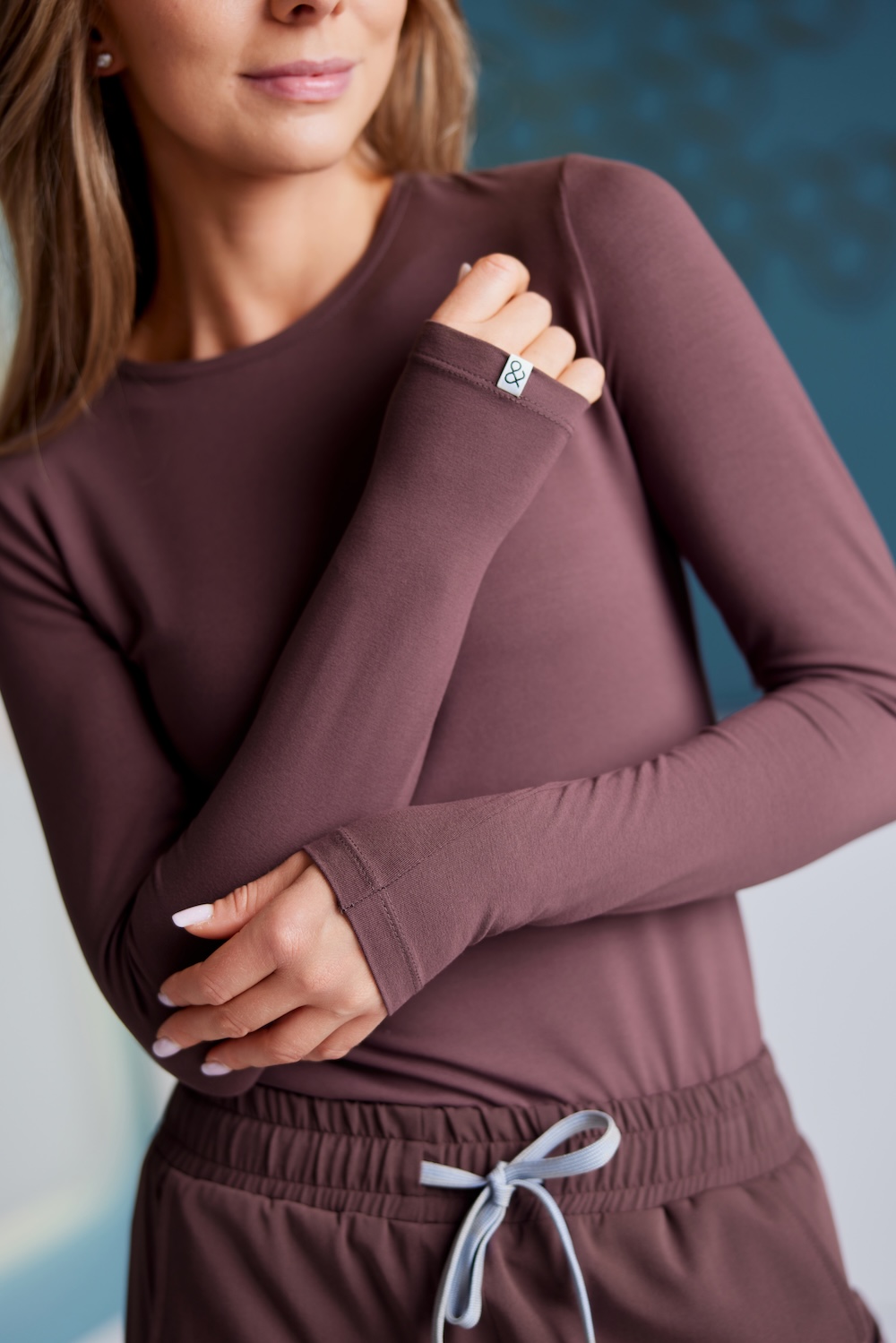 A Women's Medical Longsleeve Hot Chocolate színben sztreccs anyagból készült - a méretek ellenőrzésénél vegye figyelembe, hogy az anyag körülbelül 5 cm-t nyúlik.- Légáteresztő, lélegző és rugalmas anyag
