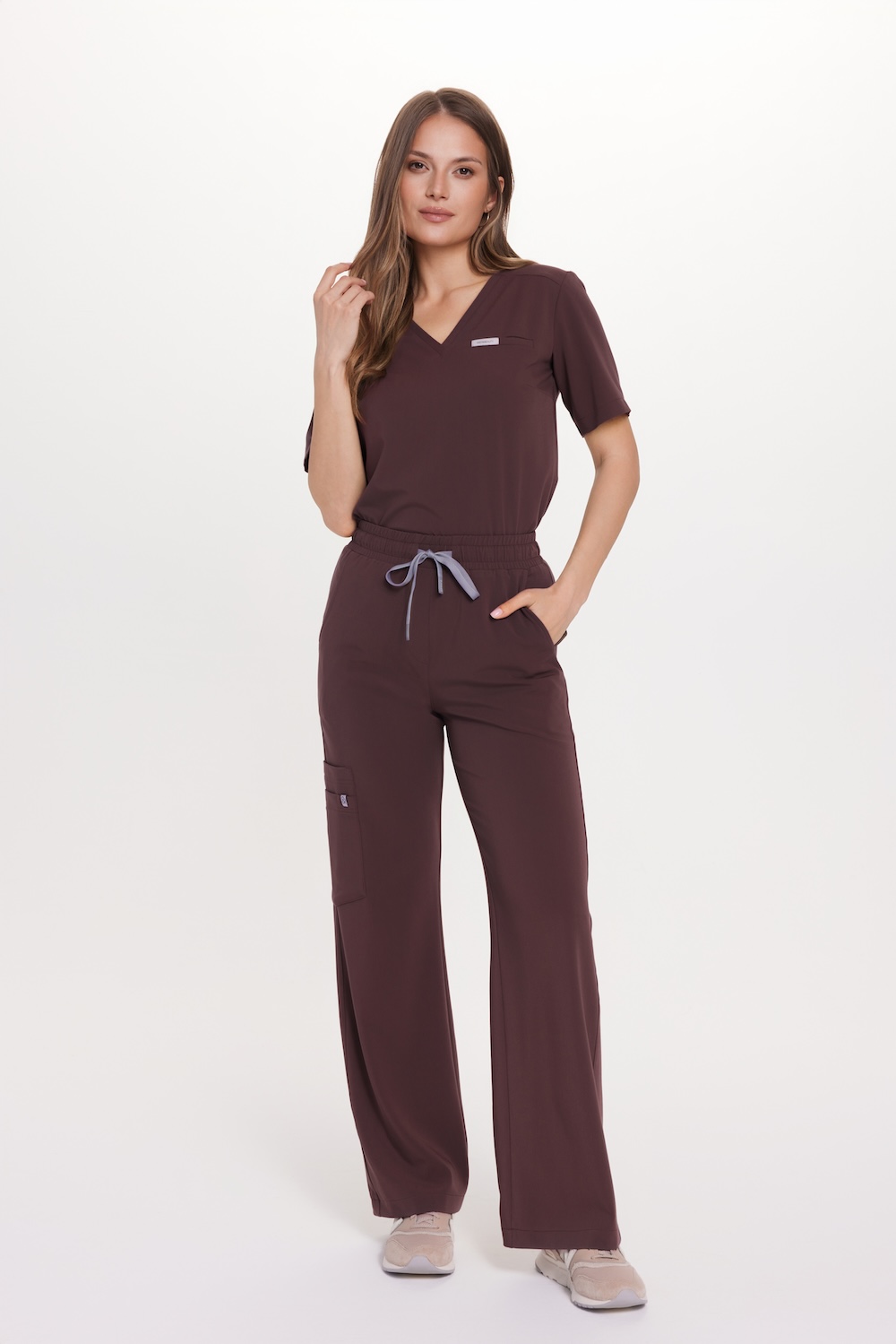 I pantaloni larghi da medico in colore Hot Chocolate si abb inano bene a qualsiasi abbigliamento, mentre le sei tasche spaziose e pratiche ti permetteranno di tenere a portata di mano tutti i tuoi oggetti e strumenti di lavoro.
