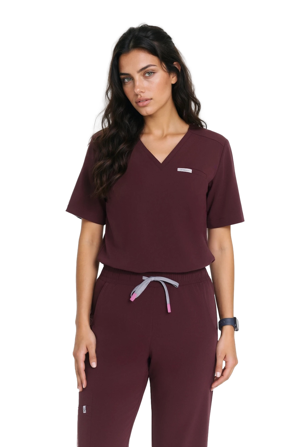Bluzka medyczna damska scrubs Basic One Pocket ŚLIWKA W CZEKOLADZIE