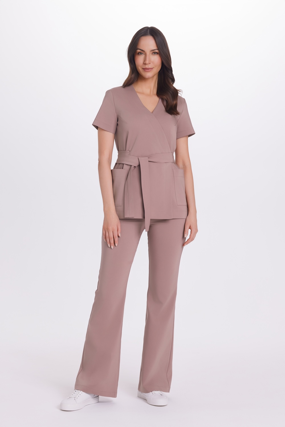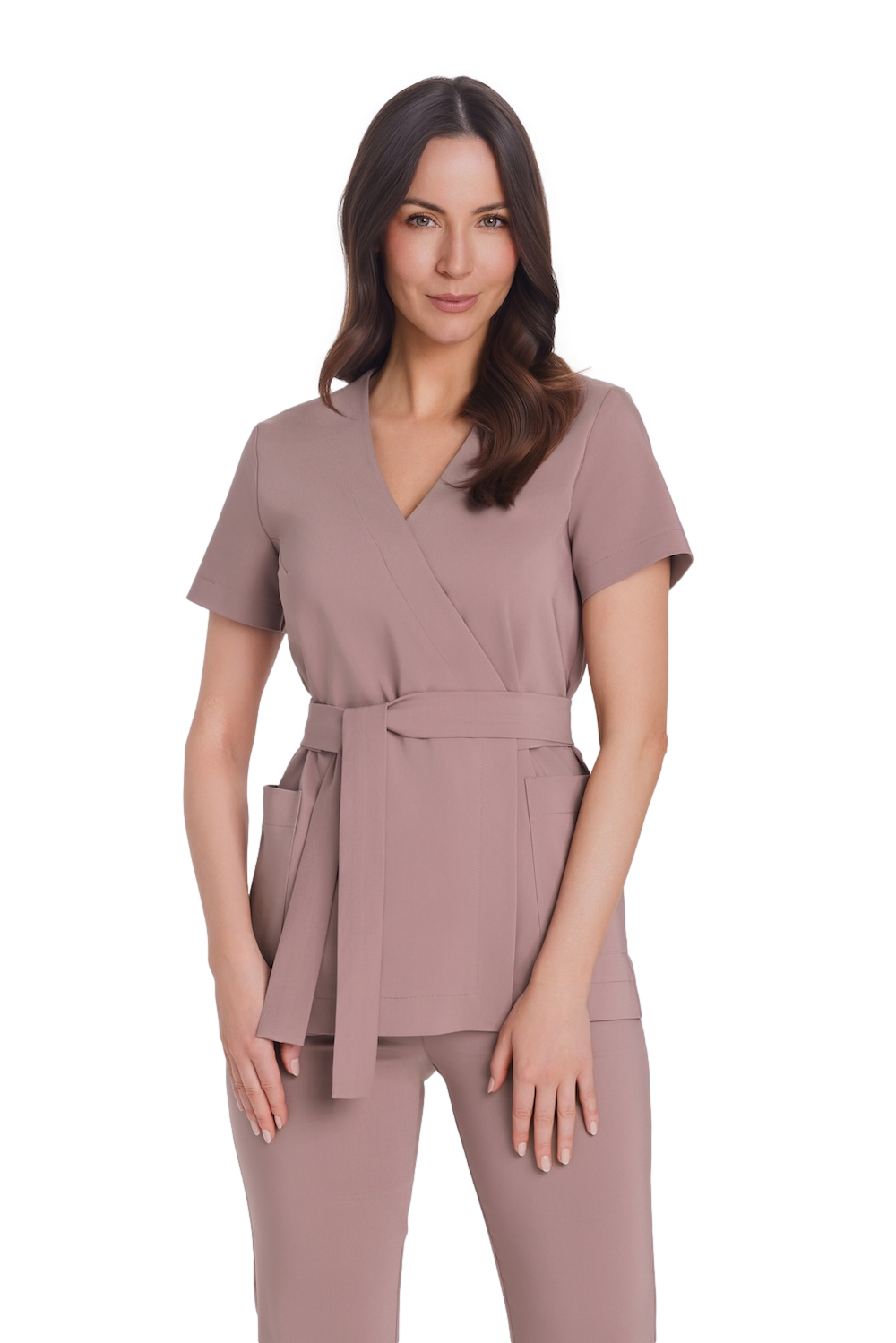 Prémiová lekárska obálková tunika s krátkymi rukávmi vo farbe Mocca je ideálnou voľbou na teplejšie dni, ale nielen na ne! Elegantný strih s opaskom v páse určite osloví všetky ženy pracujúce v lekárskom a kozmetickom priemysle, ktoré milujú klasiku a minimalizmus. Prémiová lekárska obálková tunika s krátkymi rukávmi vo farbe Mocca bola vyrobená zo zmesi najkvalitnejšej bavlny, nylonu a lycry. Táto kombinácia vlákien v tkanine znamená, že obálkové kombinézy s krátkymi rukávmi z kolekcie Med&Beauty Premium dokonale sedia ženskej postave a poskytujú plný komfort počas dlhých hodín práce. Všetky modely vrchných zdravotníckych odevov od spoločnosti Med & Beauty sú vybavené priestrannými a praktickými vreckami, ktoré vám umožnia uložiť všetky veci, ktoré chcete mať po ruke. Obrovskou prednosťou prémiovej lekárskej obálkovej tuniky s krátkymi rukávmi v odtieni Mocca je jej zapínanie vo výstrihu. Aby sme vám poskytli maximálne pohodlie, vybavili sme ho skrytým gombíkom a zapínaním. Srdiečkový výstrih je nadčasový a zároveň moderný a dĺžka tuniky bola zvolená tak, aby krásne sedela na každom type ženskej postavy. V spoločnosti Med & Beauty sa zameriavame nielen na pohodlie pri nosení, ale aj na estetický a profesionálny vzhľad. Prémiová lekárska obálková tunika s krátkymi rukávmi vo farbe Mocca bola doplnená opaskom v páse, ktorý dokonale zvýrazňuje všetky prednosti ženskej postavy. Prémiová lekárska obálková tunika s krátkymi rukávmi vo farbe Mocca vyzerá skvele s priľahlými lekárskymi nohavicami, ktoré sú vyrobené z rovnakého materiálu. Zvoľte si lekárske nohavice v rovnakej farbe alebo si zvoľte ľubovoľný odtieň z mnohých dostupných v našej ponuke.