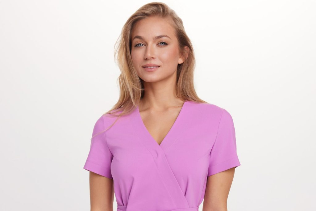 Klasická lekárska blúzka funguje dobre, ak je správne navrhnutá – mala by mať stiahnutý pás a jemný výstrih, ktorý nezvýrazňuje poprsie, ale jemne zoštíhľuje celú siluetu.